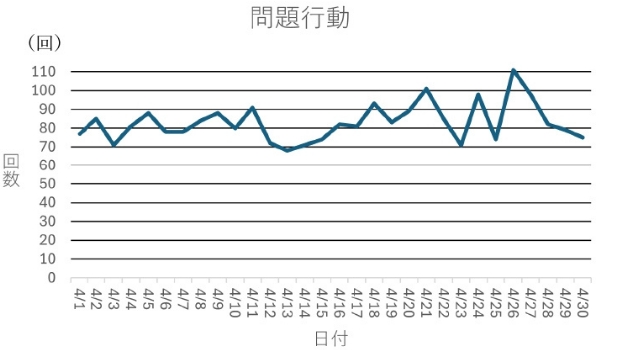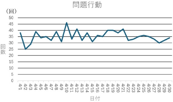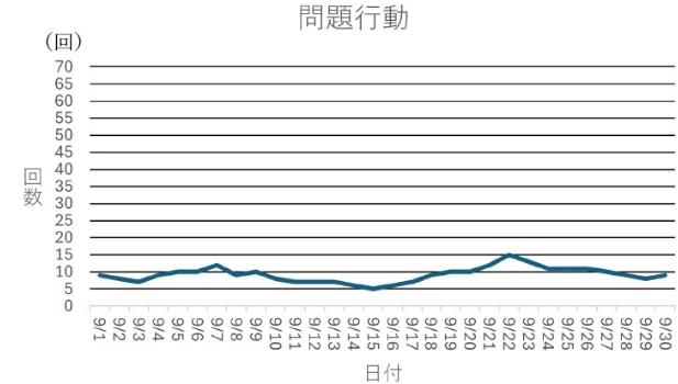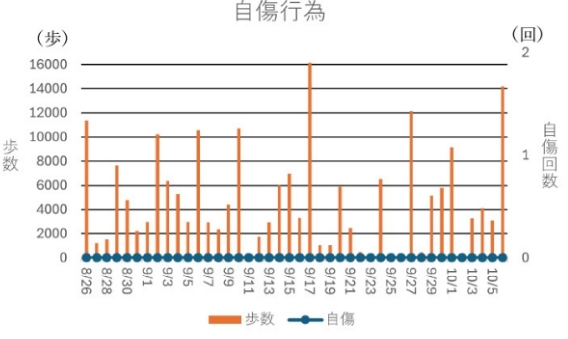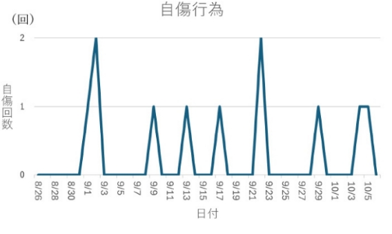 自傷行為グラフ:朝登校前はご家庭で計測/夕方は事業所で計測しています。