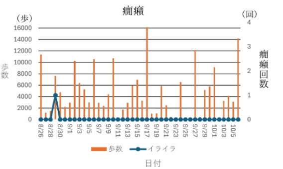 ※対象者が右足と右手が不自由なため、心拍数を歩数に置き換えてカウントしています。