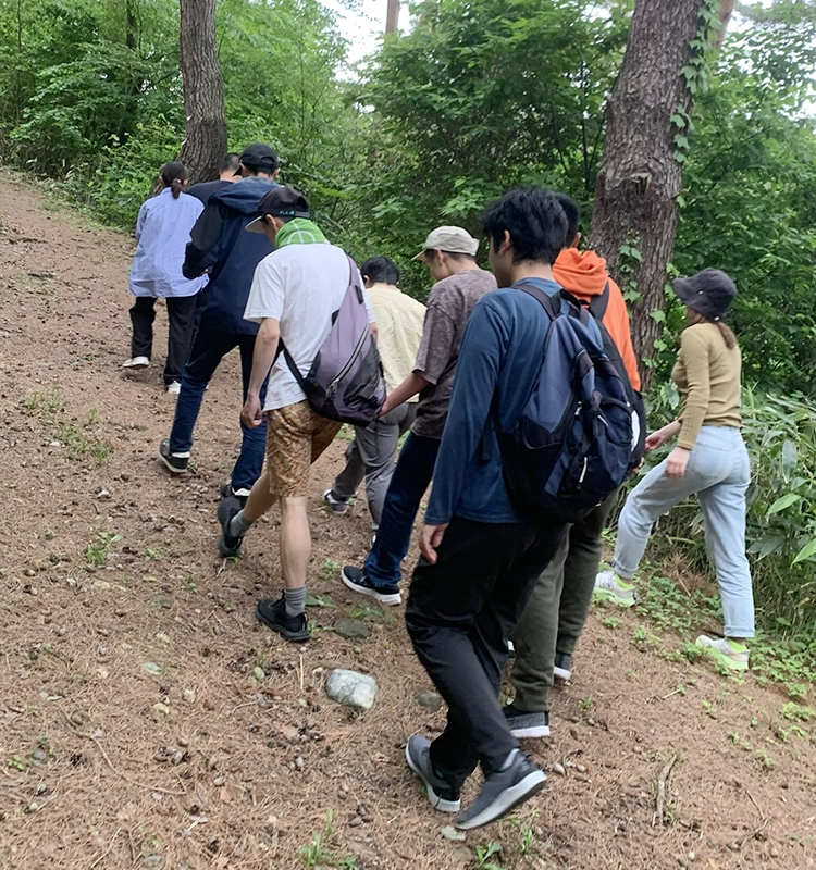 | 9:15- 12:00 | 歩行開始 屋外で1〜2時間集団で歩行をします。 全身運動により脳の発達を促すほか、周りに合わせる力、集中力がつき、前向きな気持ちと自己肯定感を高めます。 |